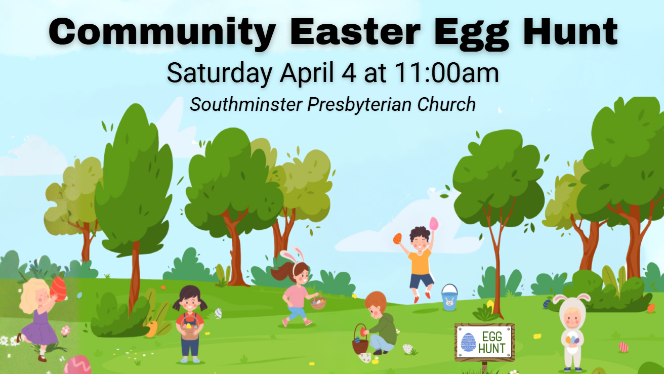 Save the Date! Southminster Easter Egg Hunt Saturday, April 4th in the Grove at 11:00. Bring your kids, grandkids, or the neighbors’ kids!